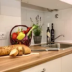 Apartment Castle appartement|Apartment Castle heeft een kleedruimte en is ingericht geluiddichte ramen, evenals een bank en een bureau. Naast een strijkijzer en strijkplank, airconditioning kunnen gasten genieten van mediadiensten zoals een TV en een flatscreen TV met satellietzenders. De accommodatie heeft 1 badkamer met een apart toilet en een douche, evenals een haardroger en badlakens.